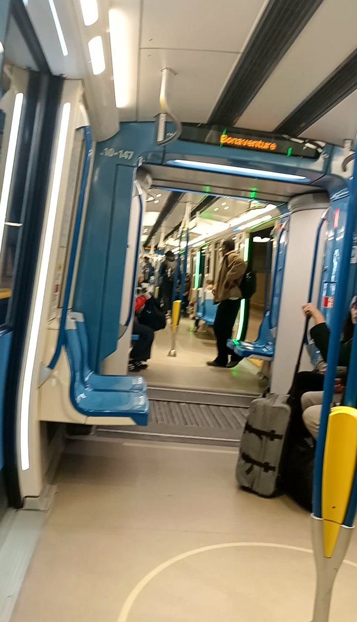 Nous sommes à Montréal dans un métro calme et peu rempli. La prise s’étale sur une période qui dure pendant un trajet entre deux stations.